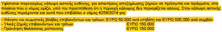 2 - Attestation d’assurance. Doit mentionner, en grec ou anglais, que la responsabilité civile couvre la couverture prévue par la loi 4270/2014.