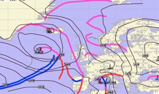 SATURDAY HIGH 1035 SOUTHRUSSIA, MOVING SLOWLY EAST. SATURDAY LOW 970 BEAR ISLAND, MOVING SLOWLY EAST. SATURDAY LOW 977 JUST NORTHEAST OF ICELAND, FOR A TIME DEEPENING, MOVING EAST, MONDAY SOUTHWEST OF LOFOTEN, FOLLOWING WEAKENING.IAC Fleetcode Exemples: Atlantique nord, Atlantique sud, Sud Pacifique Données: cartes synoptiques (parfois + bulletins texte) Données expertisées. Disponibilité: continue Horizon prévision: situation et +24h Moyens techniques: Email via radio E/R ou TelSat Coût: communication, fichiers qques kb, probablement meilleur c/r