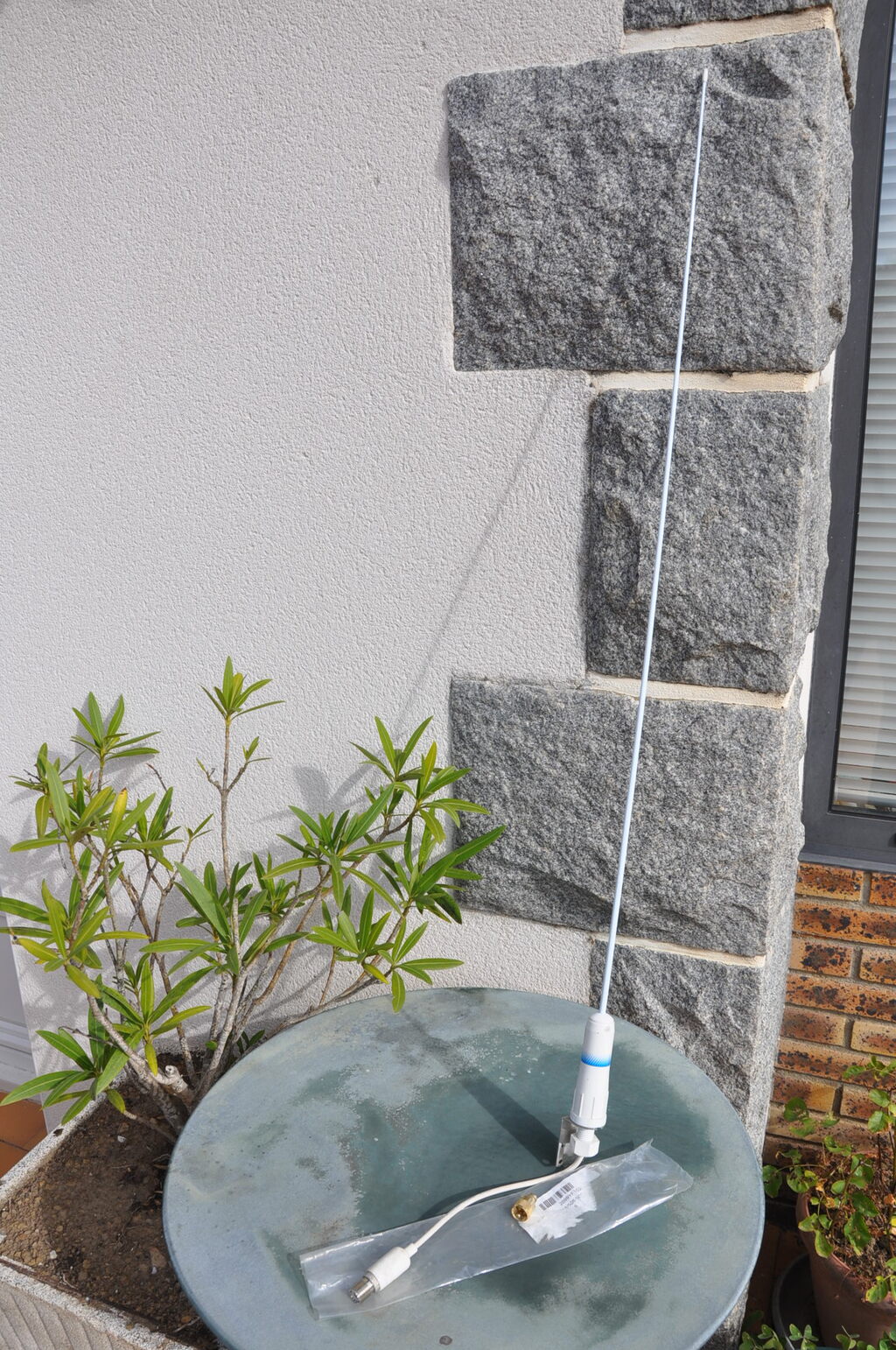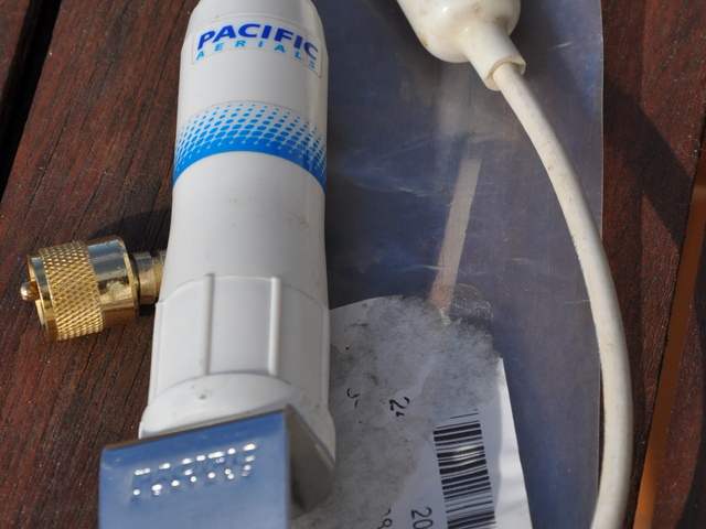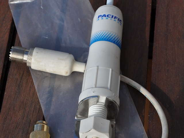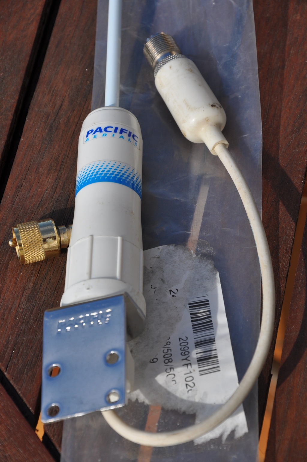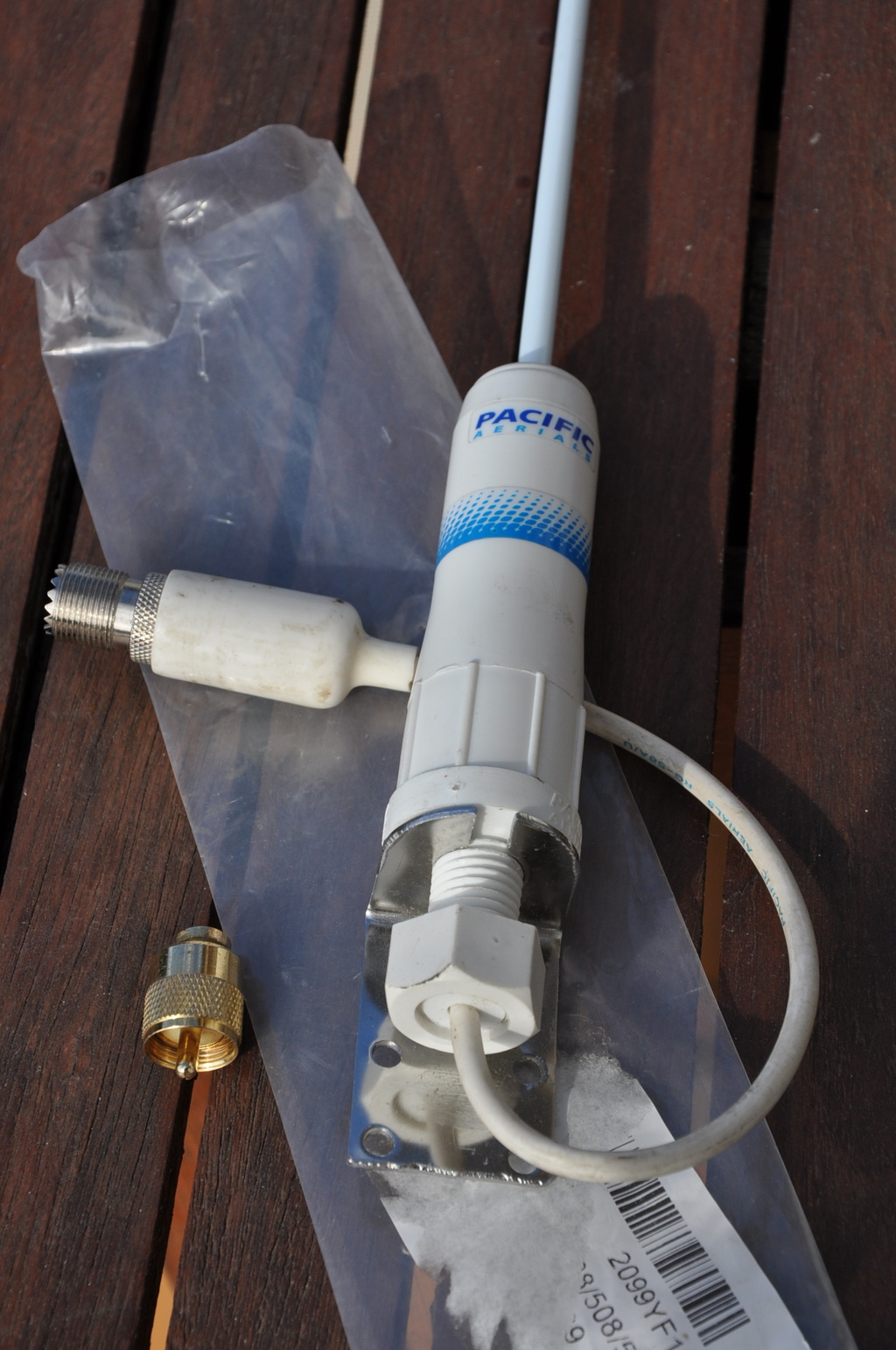 Antenne VHF Pacific Aérials neuve. Livrée complète avec 1 prise PL-259 pour le câble de descente.Longueur totale 107cm. Sillon 1m.