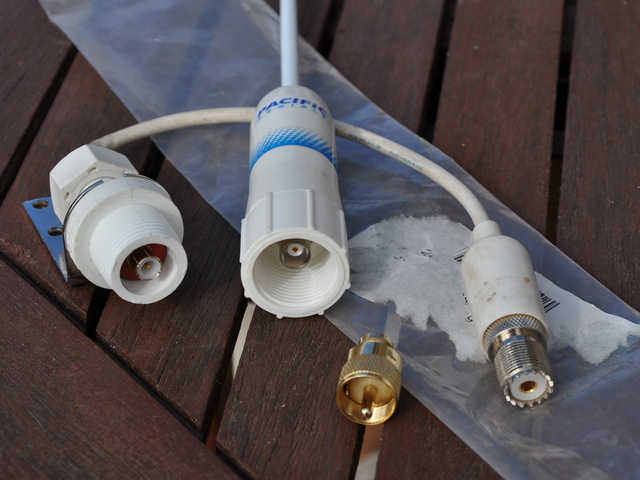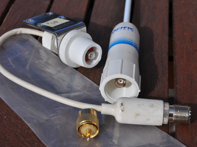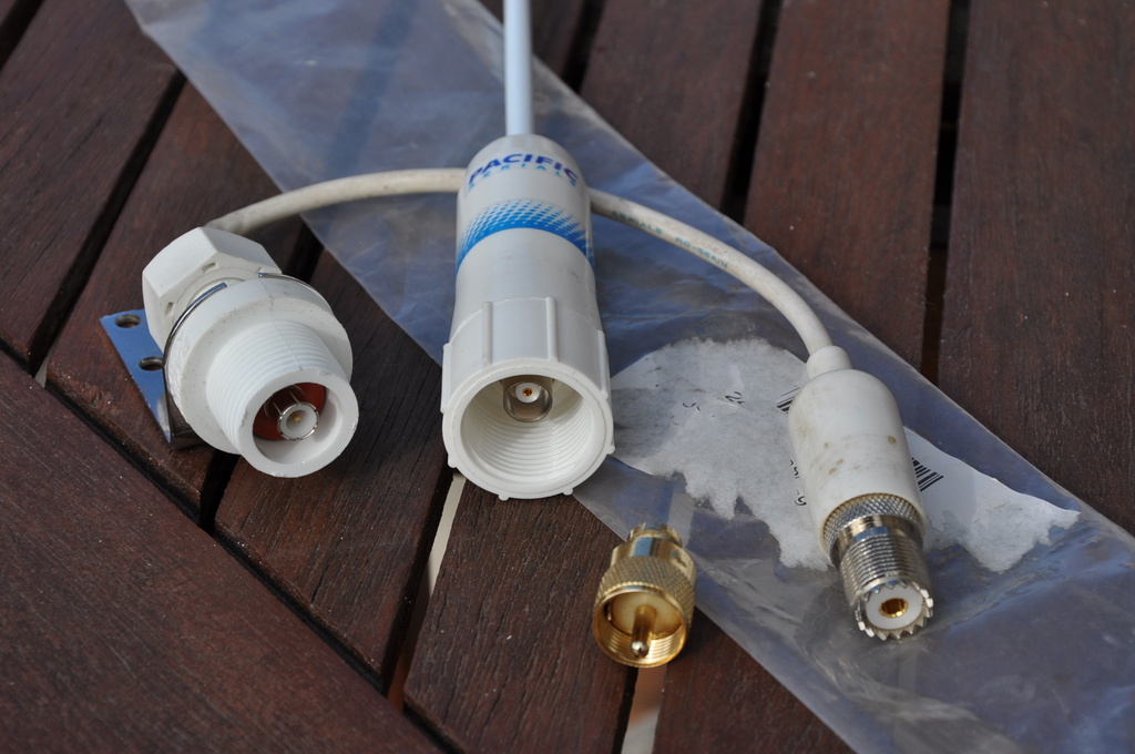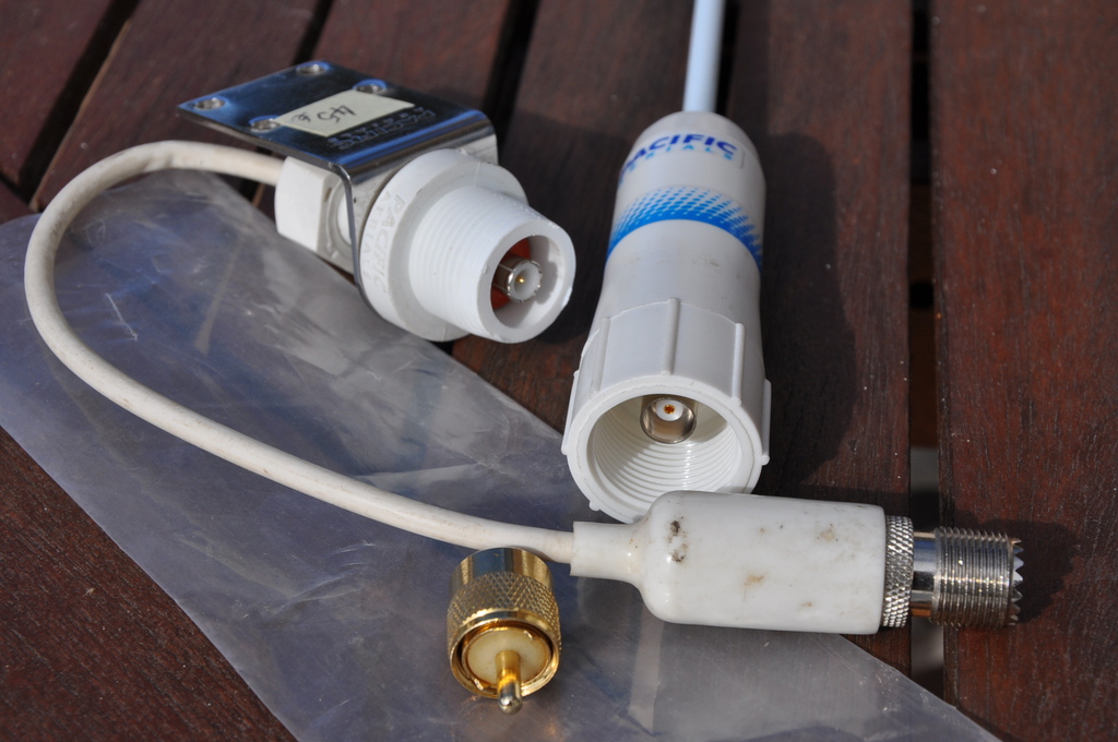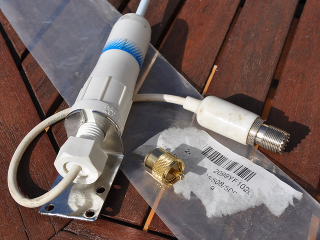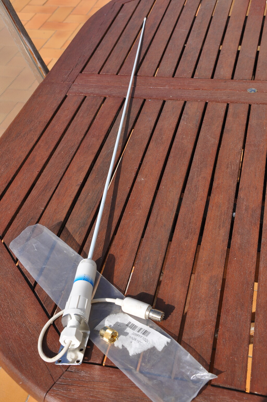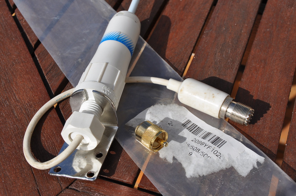 Antenne VHF Pacific Aérials neuve. Livrée complète avec 1 prise PL-259 pour le câble de descente.Longueur totale 107cm. Sillon 1m.