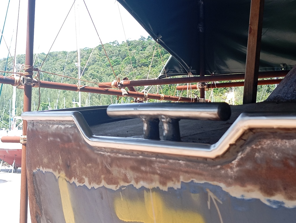 Nous avons 18 chandeliers en inox. Il nous reste à installer les tableau de bord, les bossoirs et le bimini (nous avons les anciens).