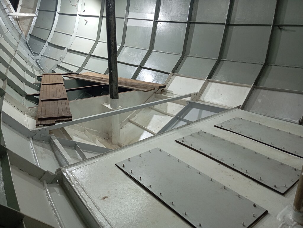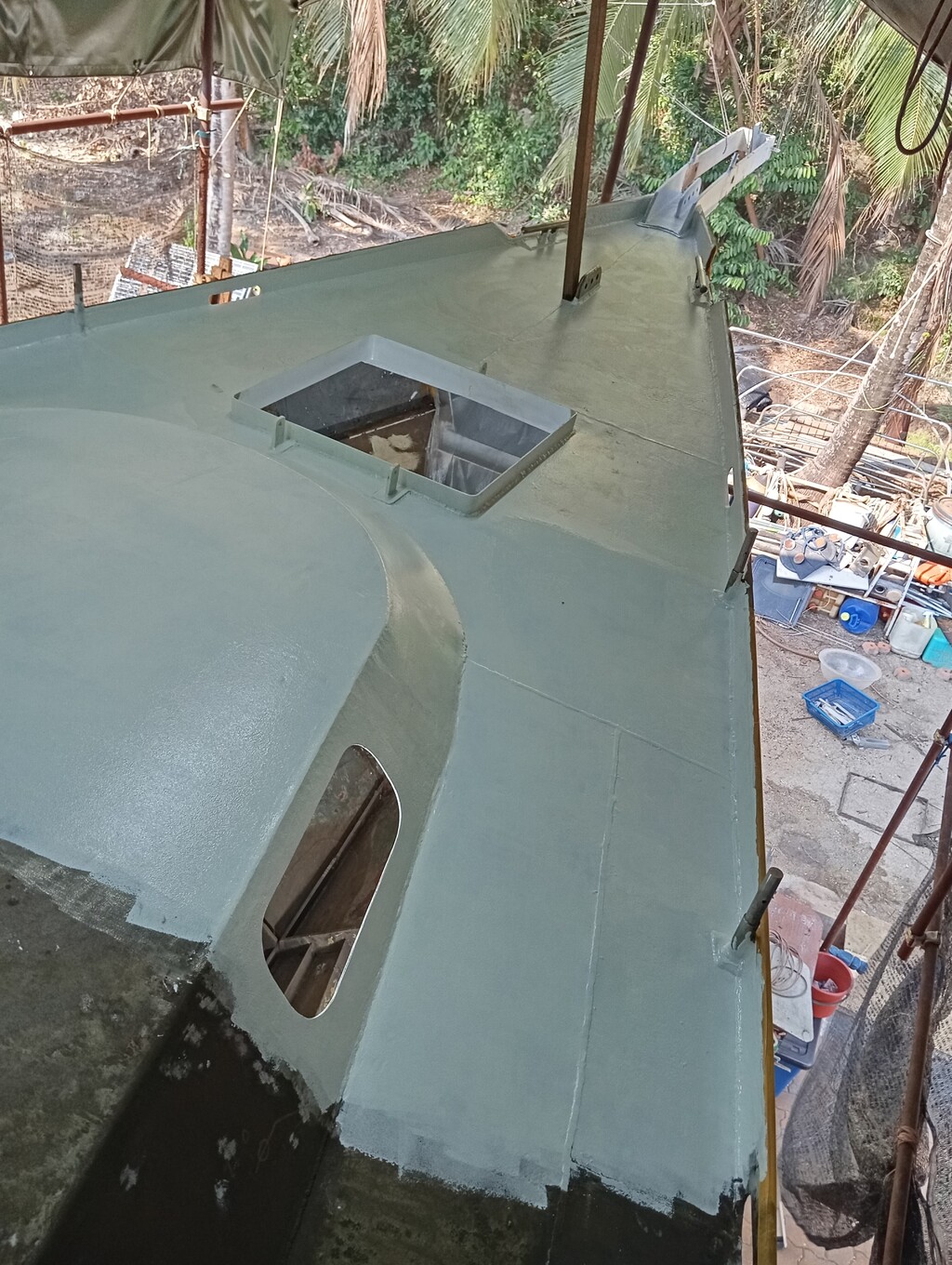 Nous avons refait le pont, installé un nouveau barre d'arcasse et de nouvelles plaques de coque aux endroits nécessaires.