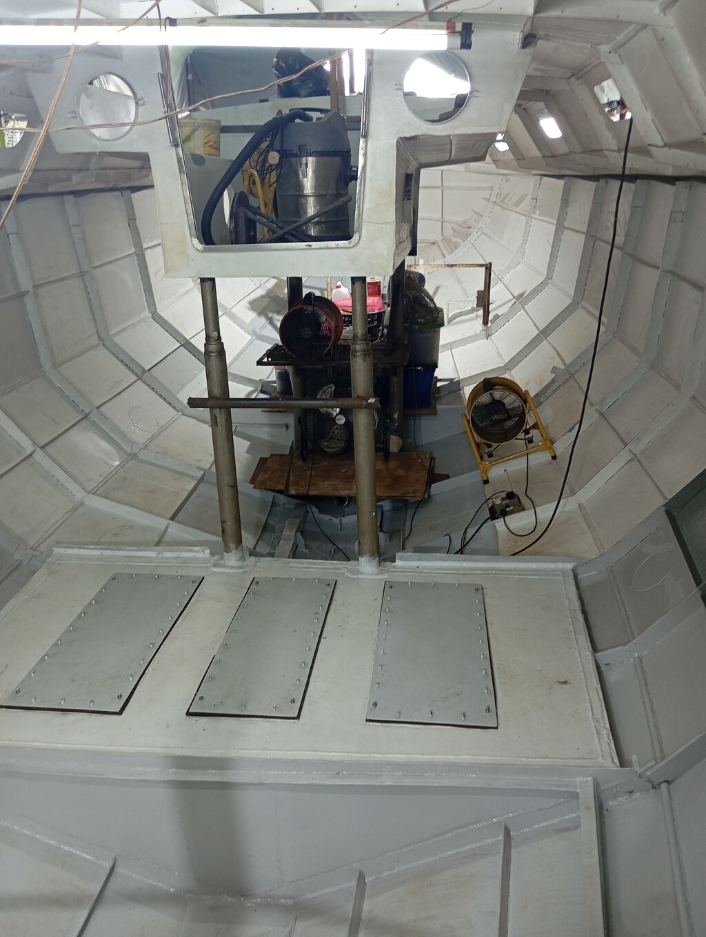 La coque est entièrement soudée, à l'intérieur comme à l'extérieur.