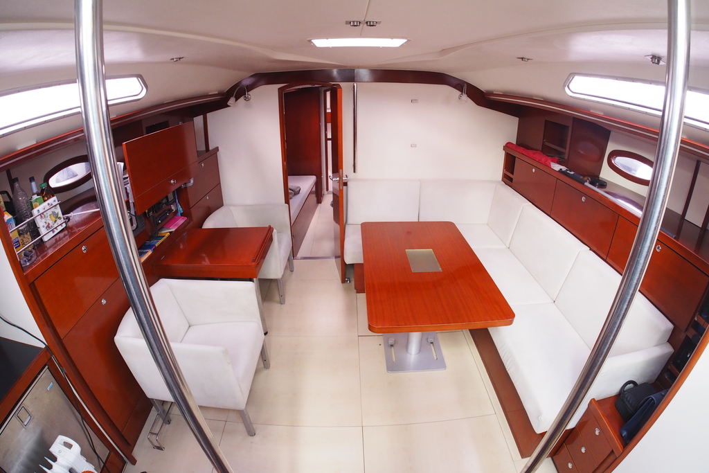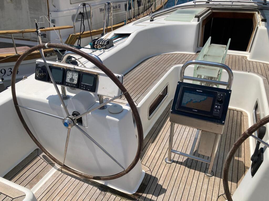 GV + Foc à renouveler dans un avenir proche pour exploiter au maximum ses performances. Bateau fiable, sécurisant, et très performant même dans les petits airs et le près serré.