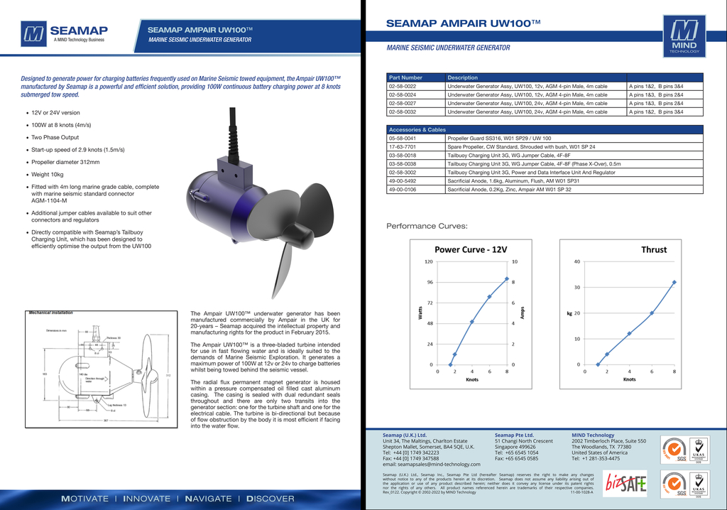 Le générateur sous-marin Ampair UW100TM est fabriqué commercialement par Ampair au Royaume-Uni depuis 20 ans.