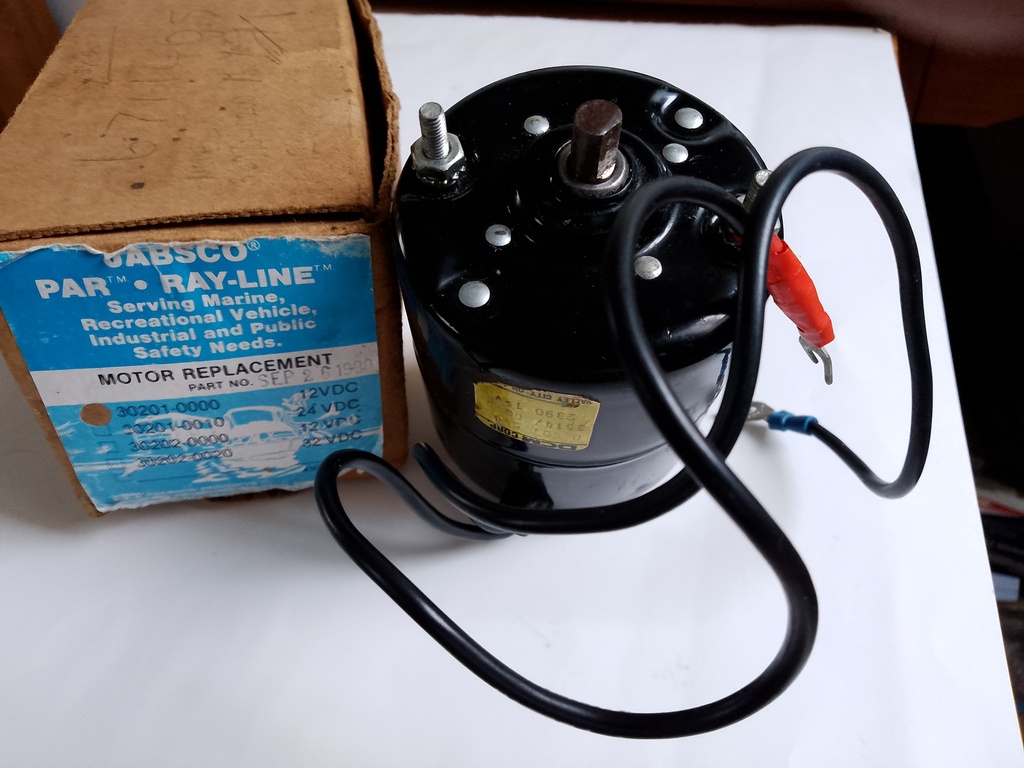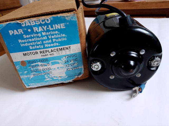 Moteur de remplacement neuf pour pompe de cale Jabsco ou distribution eau . Modèle 30201-0000. 12v. Convient aux pompes 36970-37202-37205-37215 etc... Valeur 200 à 300€ et + quand disponible.