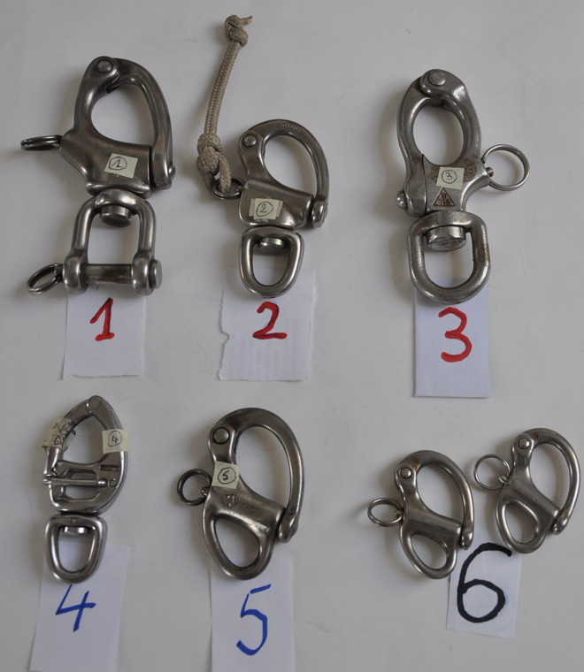 - No6 : 2 mousquetons de drisse à œil ? Longueur 50mm.960/2000kg. 20€ pièce.