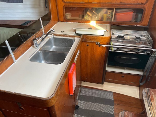 Coin cuisine comprenant réchaud 2 feux + four, réfrigérateur (contrôleur électrique + thermostat remplacé), eau chaude sur 220v/moteur.