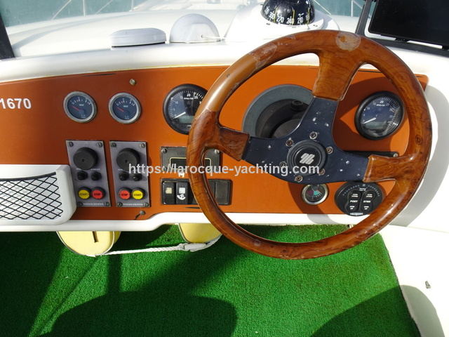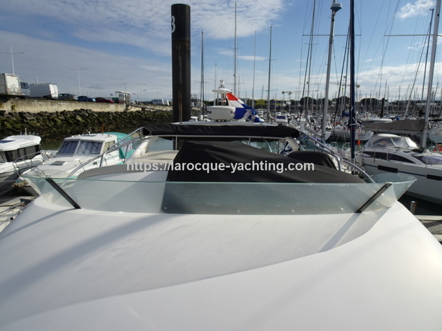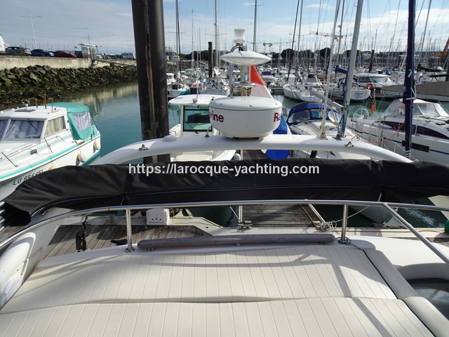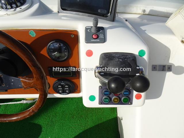 Propulseur d’étrave Max Power. Guindeau électrique Quick (2022). Mouillage principal ancre Delta + 60 m de chaîne + 20 m de câblot. Jeu de coussins de bain de soleil avant. Taud de camping effectué sur mesure, en parfait état. Jeu de coussins de cockpit. Table de cockpit. Pompe eau de mer dans le cockpit. Fond de cockpit latté teck. Echelle de bain. Douchette de cockpit. Plateforme arrière lattée teck. 1 Poste pilotage au fly-bridge. Taud de poste de pilotage. 2 Sièges pilotage et copilotage avec tauds de protection. 1 Bimini sur le fly-bridge. 1 Jeu de coussins de bain de soleil.