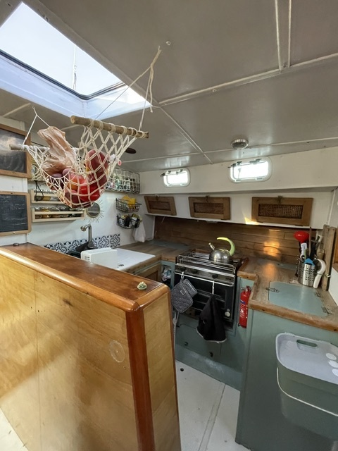 Dériveur avec jupe, équipé grand voyage.