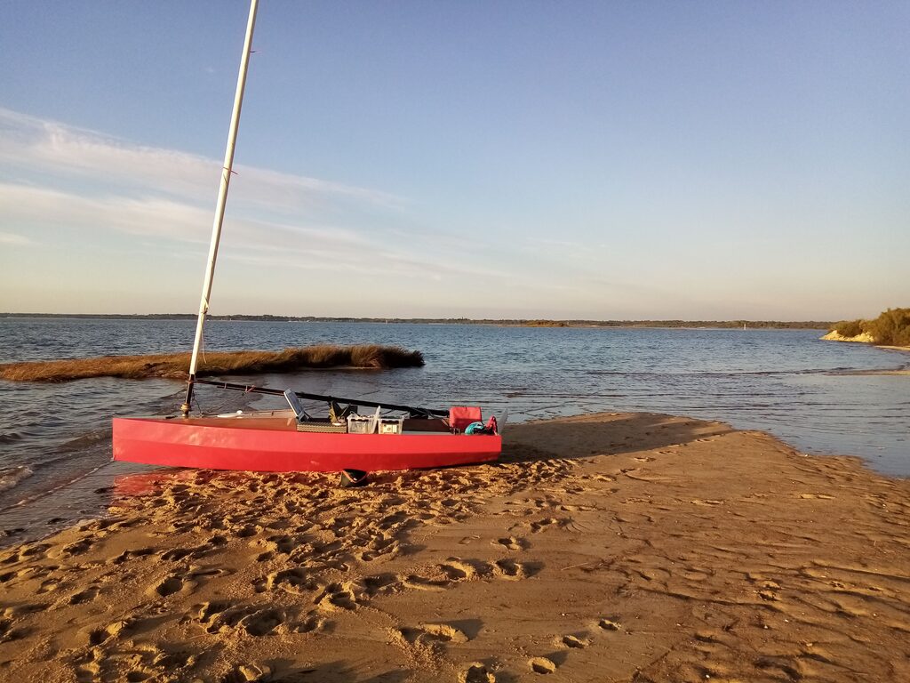 L'avant du bateau (volume étanche) peut accueillir du matériel de randonnée, le grand cockpit permet le bivouac à bord.