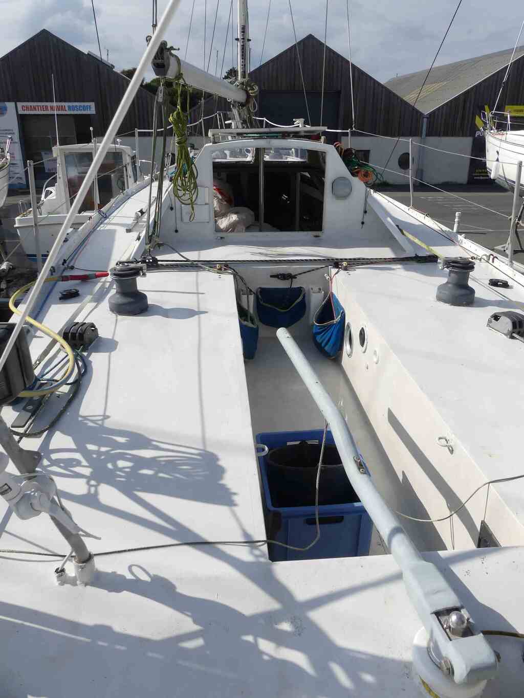 Vends voilier transocéanique Sharp 47 allongé à 51’ par une jupe complémentaire (allongement de la flottaison + accès à l’eau génial – travail professionnel), ULDB construit en 1984 par le chantier Leguen-Hémidy (spécialiste des voiliers de grande croisière en alu avec la série des Romanée, Brise de mer, Les copains d’abord, Lévrier de mer, etc…) sur plan Ribadeau-Dumas (Sun Odyssey 42, Voyage 12.50, Mercator, etc…). Dimensions : 15.50 X 2.80, TE de 1.80, 3.5 tonnes dont 1.5 tonnes de lest en plomb. Moteur in-bord volvo D1-20 de 2016 (50 heures) en sail-drive. Nombreuses dépenses en 2022 (gréement dormant et courant (Dyneema), électronique, gennaker et son accastillage, tous les hublots en plexiglass, etc…). Historique : Ce bateau été commandé par Guy Bernardin qui l’a mené dans la Transat anglaise et la Québec-Saint Malo en 1984 (Biscuits LU), puis il a été basé en Bretagne. Son poids très faible lui permet d’aller vite (et bien) au près avec une voilure très maniable (foc auto-vireur) et de s’éclater au portant (gennaker 80 M²). Le gréement permet des réglages très fins (format 7/8ème, 3 étage de barres de flèche, bastaques…). Ce bateau est le numéro 2 de la série qui en a compté 4 avant la production de son successeur, le Shark 50. Le numéro 3 de la production a fait le tour du monde en solitaire d'Est en Ouest en 2012, mené par Stéphane Narvaez : c'est à ce jour l'unique bateau de série à avoir accompli cette performance, preuve d'une capacité hors normes à affronter les éléments ! Concept du Shark 51 : Naviguer vite et bien en priorisant les valeurs essentielles de la voile : Simplicité et efficacité.