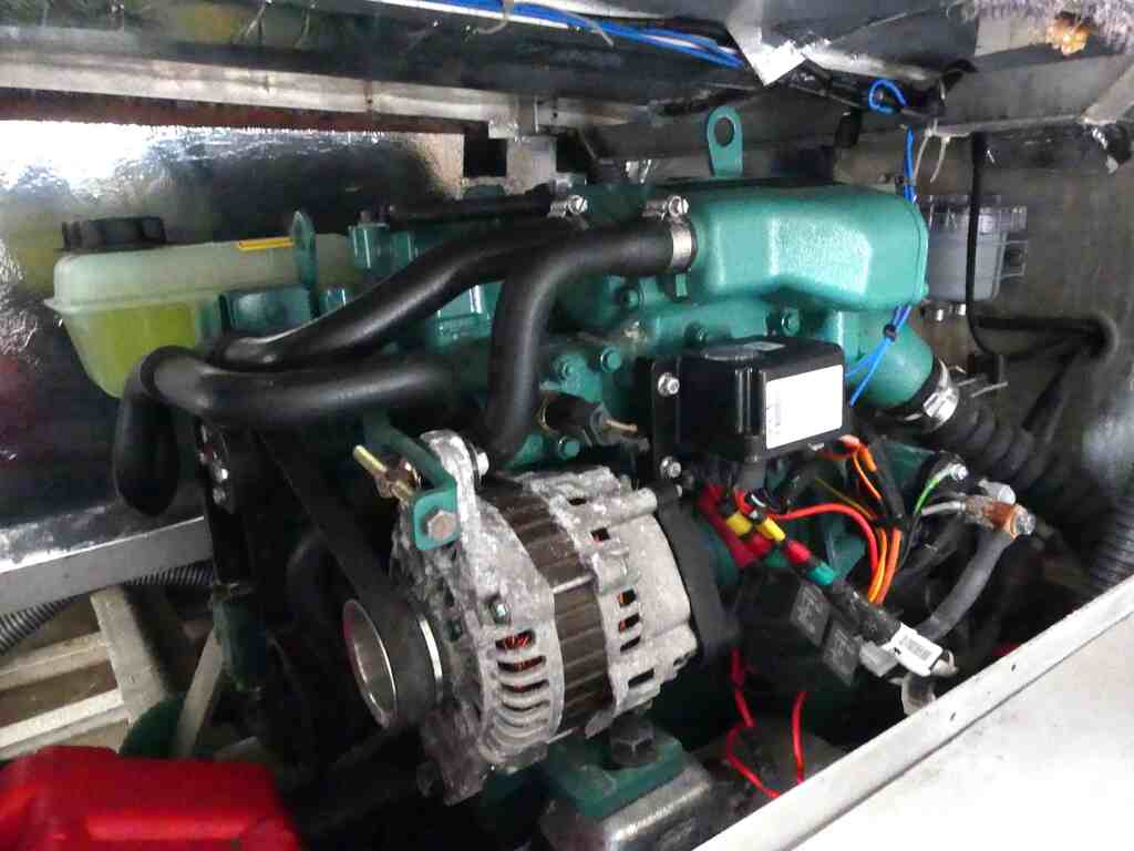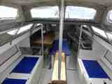 NB 1 : les emménagements sont très simples et faciles d’entretien avec un confort rudimentaire. De la poupe à la proue : deux couchettes simples derrière la descente de part et d’autre de la cale moteur (insonorisée), carré avec table repliable et deux couchettes simples, table à carte grand aigle à bbd, cuisine avec feu sur cardan et évier avec prise d’eau de mer à tbd, WC marins, deux couchettes simples, puis compartiment étanche accessible par une trappe et, in fine, compartiment étanche totalement cloisonné.