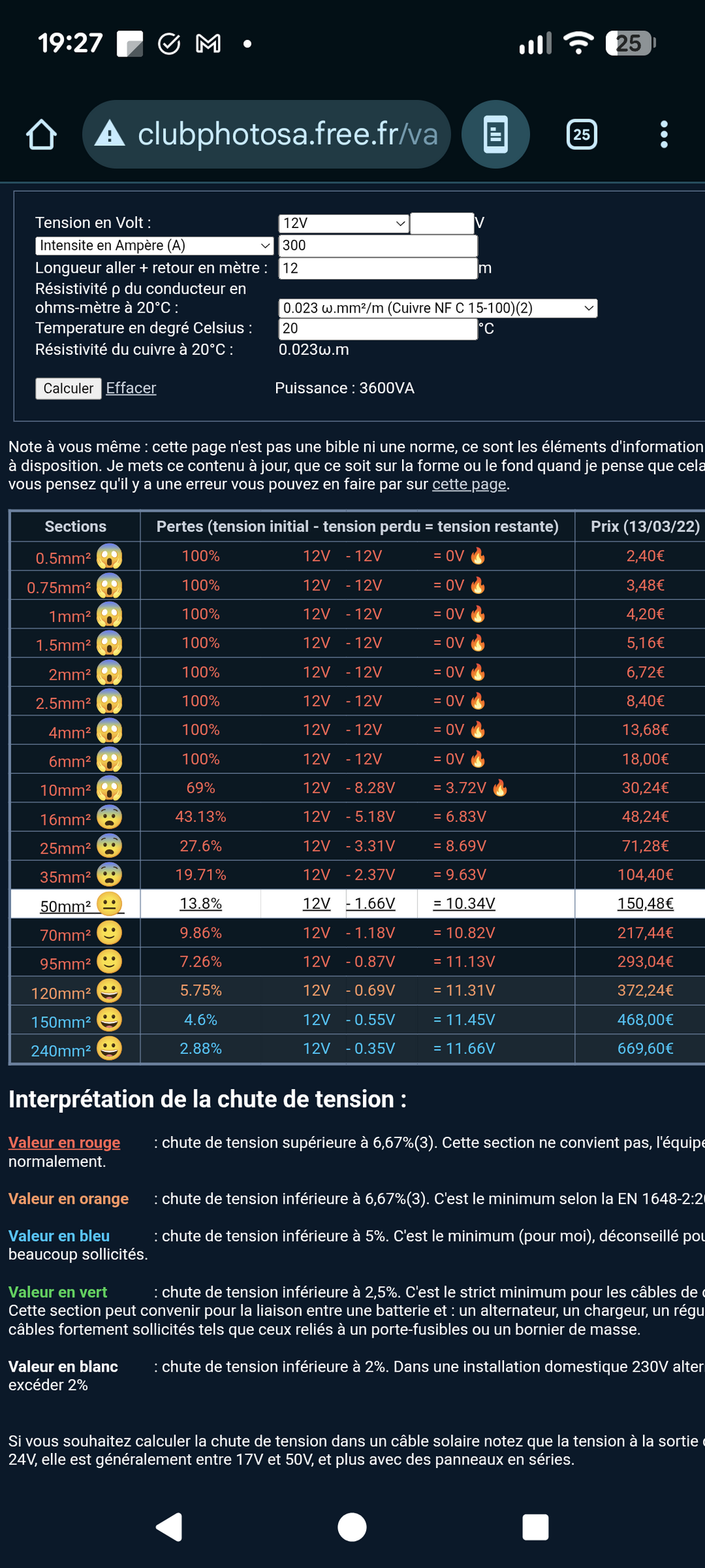 Un calculateur de chute de tension :