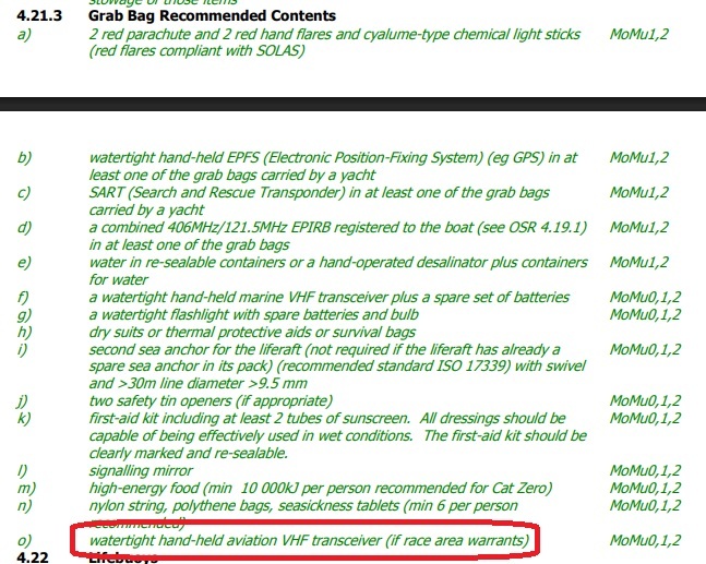 En detresse (donc soit radeau classique soit annexe utilisee en survie) les Regulations Radio de l ITU stipulent que tout moyen de communication radio est autorise, pas besoin de licence ni certificat operateur. Il y a aussi des cas ou des portables aeronautiques ont ete utilisees pour se signaler aux avions au dessus, une edition des OSR les rendait meme obligatoires/fortement conseilles pour les courses Cat0, je n ai pas verifie avec la version plus recente.
