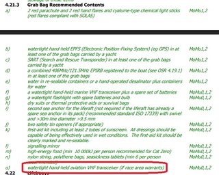 De surcroit si pour une nav au delà des 60 milles une VHF portable est devenue obligatoire, c'est bien pour qu'elle puisse émettre à partir d'un bib voire d'un simple gilet de sauvetage...