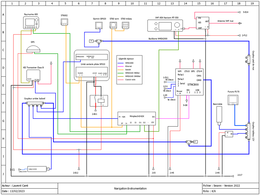 Puisque l'on est dans le partage des schémas de réseau avec NMEA2000, voici celui du bord. Des évolutions sont prévues du côté de l'instrumentation.