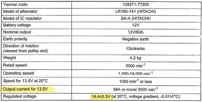 1ère question: combien est supposé sortir ce type d'alternateur 13.5 ou 14.4V ? J'aurais dit 14.4, d'où mes suspicions de panne.