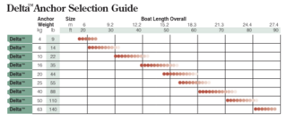 ci-dessous le tableau de dimensionnement proposé par Lewmar pour la Delta.
