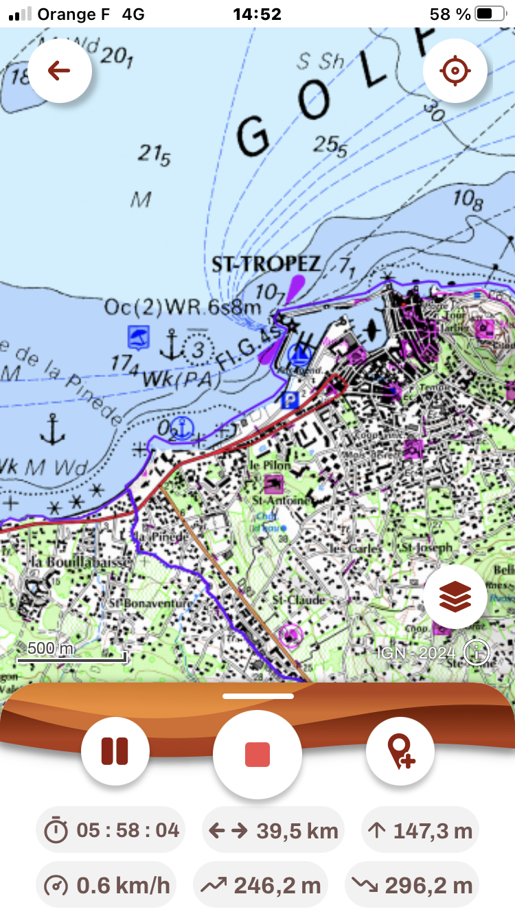 C’est une carte marine et on pourra avoir sa vitesse et la trace a peu près ce que donne mon Navionics en version non payante