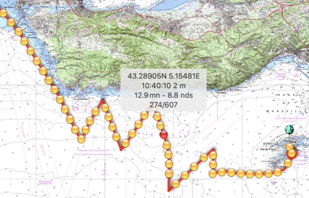 Edit: pour mémo, voici trois copie d'écran de la même trace, en mode affichage et en mode édition sur fond SHOM, en mode édition sur fond littoral. Bon c'est pas très utile car pour avoir le SHOM il faudrait demander/convaincre les actuels gestionnaires/devs de l'appli.