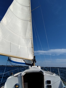 Sur ce type de canote, je ne vois pas l'intérêt d'un gennaker ou d'un spi asymétrique en croisière. Soit le génois porte et c'est bien suffisant, soit il ne porte pas parce que le vent est insuffisant, alors il faut voir si l'on a envie de s'emmm... avec un spi dans ces conditions, soit il ne porte pas parce qu'il est déventé par la grand voile et alors c'est un grand spi symétrique tangonné et creux qu'il faut car cette voile est adaptée au vent arrière.