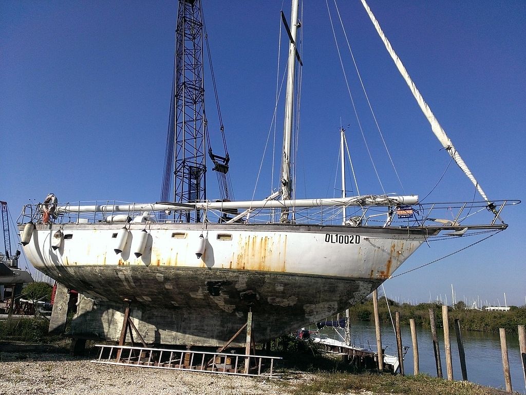 Je ne l'ai pas encore acheté et je pèse le pour et le contre mais ce bateau est magnifique, bien acastille, spacieux, confortable et étanche. Je reste persuadé que de réparer ça n'est pas pire que de courir derrière la rouille dans l'humilité constante de mon acier. Il faut que je vois le moteur mb180,son état,s'il a une chance de redémarrer et s'il ne baigne pas dans l'huile... Je vois ça comme une belle aventure avant le tour du monde. C'est en travaillant sur son bateau qu'on apprend à le connaître, non?
