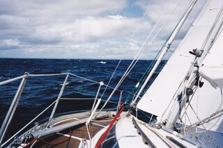 Au près dans la brise, cela provoquait des grincements qui m'empêchaient de dormir. J'avais mesuré que le pont avançait et reculait de 2 mm, sous l'action de l'avale-tout de génois.