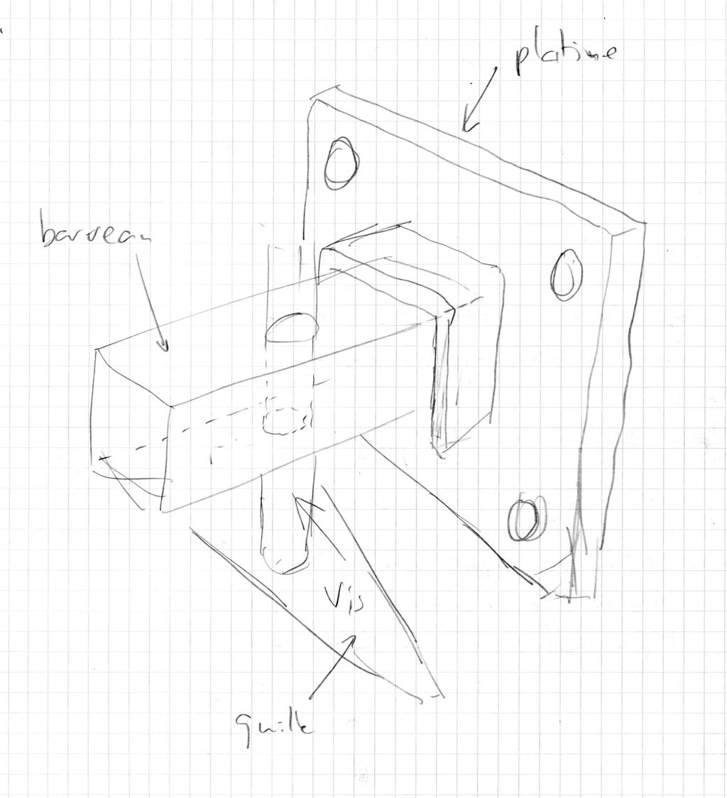 Le chantier avait ajouté après coup un système de blocage avec des platine boulonnées sur les côtés du puits, à l'avant et à l'arrière, et des barreaux qui venaient se bloquer sous les platines avec une vis qui appuyait sur le quille.