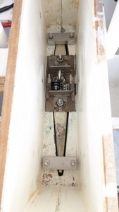 J'ai mis deux barreaux en alu qui appuient sur le dessus de la quille à l'avant et à l'arrière. Ils sont boulonnés sur la partie horizontale du puits entre la section profilée et la section rectangulaire au dessus de la flottaison. Je posterai des photos.