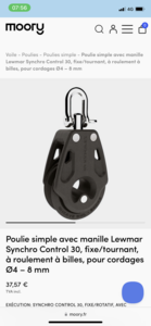 Je ne me trompe pas, sur mon bateau c'était des poulies de la gamme Control avec joues en plastique chargé de fibre de verre.