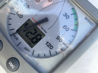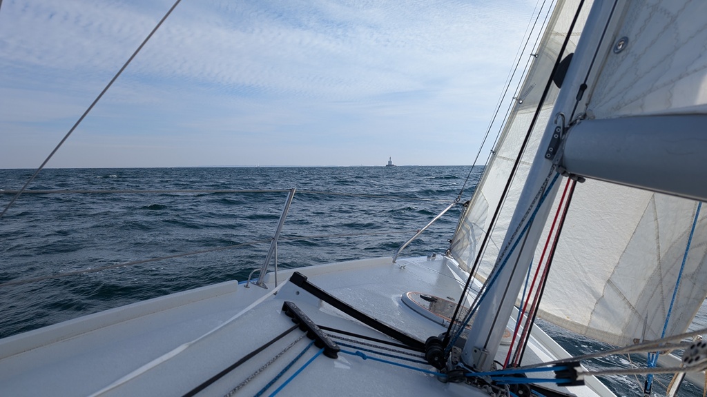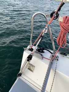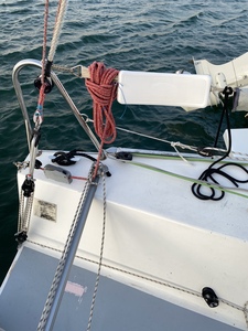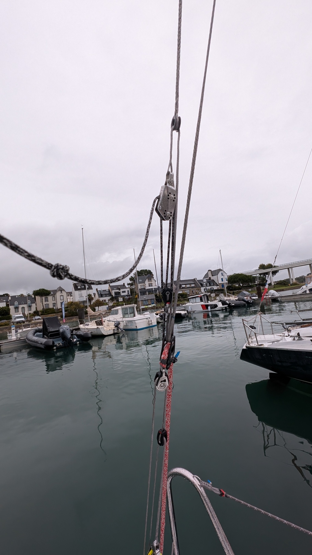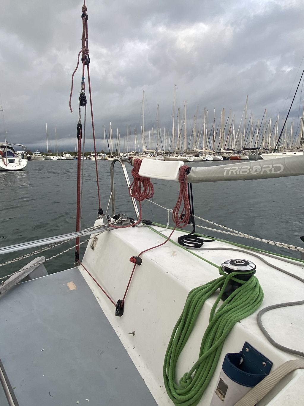 Tu vas pouvoir t'attaquer au réglage du gréement, le haubanage sous le vent ne doit pas être détendu, et ton mât devrait mieux se tenir.