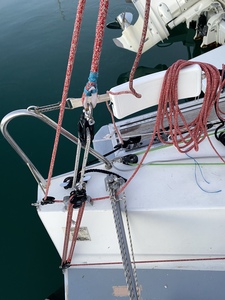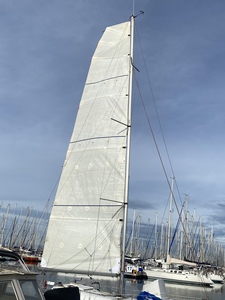 Je confirme que c'est un gréement à barres de flèches poussantes. Le haubanage est en monotoron 5 mm et j'ai suivi les méthodes de réglage Selden et Z-Spars. Je dois avoir un peu plus de 15% de la charge de rupture sur les galhaubans. Ce n'est pas directement transposable à un gréement à barres de flèche dans l'axe.