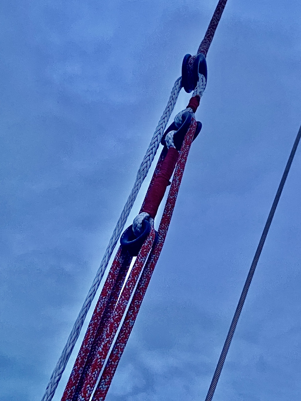 Je vais je pense faire un moufflage avec de la drisse de 6 et une poulie textile ouvrante