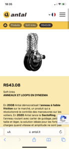 Une poulie textile ouvrante sur la voile type antal ou wichard et hop