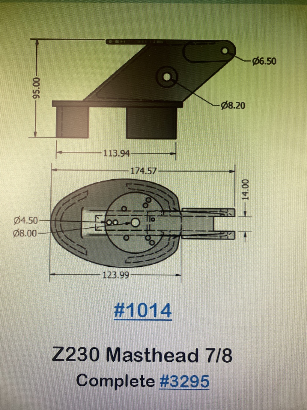 Je ne suis pas sûr qu'on a cette pièce sur nos mâts, il n'y a pas de rétreint en tête du mât. Mais ça ne doit pas changer les 14 mm.