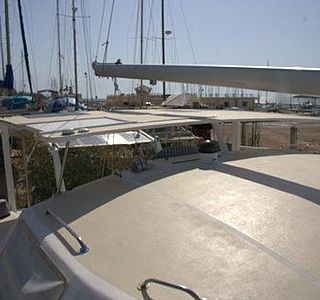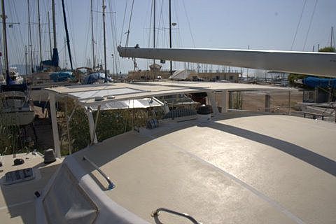 En Grèce, j'en ai fait faire un par un artisan anglais . Il a utilisé une espèce de mousse rigide et légère ( je crois qu'il existe plusieurs densités)qu'il a enduit de polyester et de gelcoat. Le résultat est un produit léger et on peut monter dessus, malgré sa grande surface ( c'est un cata)