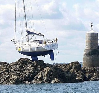 Vu à Jersey dans le bassin à échouage un bateau posé sur sa quille à ailette, sans béquilles. Il gîtait pas mal... ça nous a intrigué.