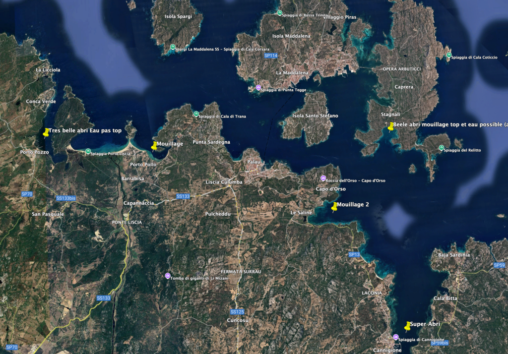 Madallena donc à éviter... donc pourquoi pas, cap au sud comme proposé... ou à l'opposer, dépasser santa teresa, mais ça implique de passer les bouches de bonif...