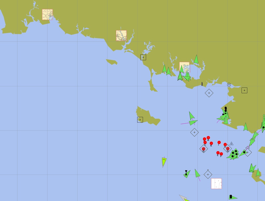 The weather/routing laptop used Adrena software and had only the C-Map default World Map Coverage of the entire world at a small scale and highly generalized with little detail.