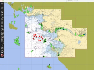 The performance and navigation laptop ran Expedition and had the Deckman/C-Map dongle that was licensed to enable the use of the detailed C-Map charts worldwide. License codes for the detailed C-Map map data were not acquired for the second Deckman C-Map USB dongle, or for the Adrena USB dongle that were used in the weather/routing computer.