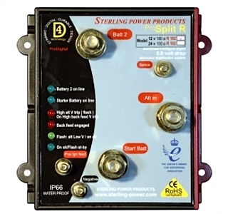 J'ai installé se répartiteur, qui je crois est traditionelle, et lui charge la batterie de démarage en priorité, et complete la servitude si besoin...et ainsi de suite et mon parc et toujours à 100%, ça c'est pour l'alternateur, sinon il y'a l'éolienne, le solaire, le chargeur de quais et la c'est un autre branchement.
