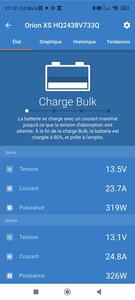 Solent:Sur ce mode d’emploi il y a un mode Lithium.L’Orion en fin de charge envoie un faible amperage, environ 4A. Le chargeur détecte peut-être une batterie chargée.·le 04 déc. 09:18