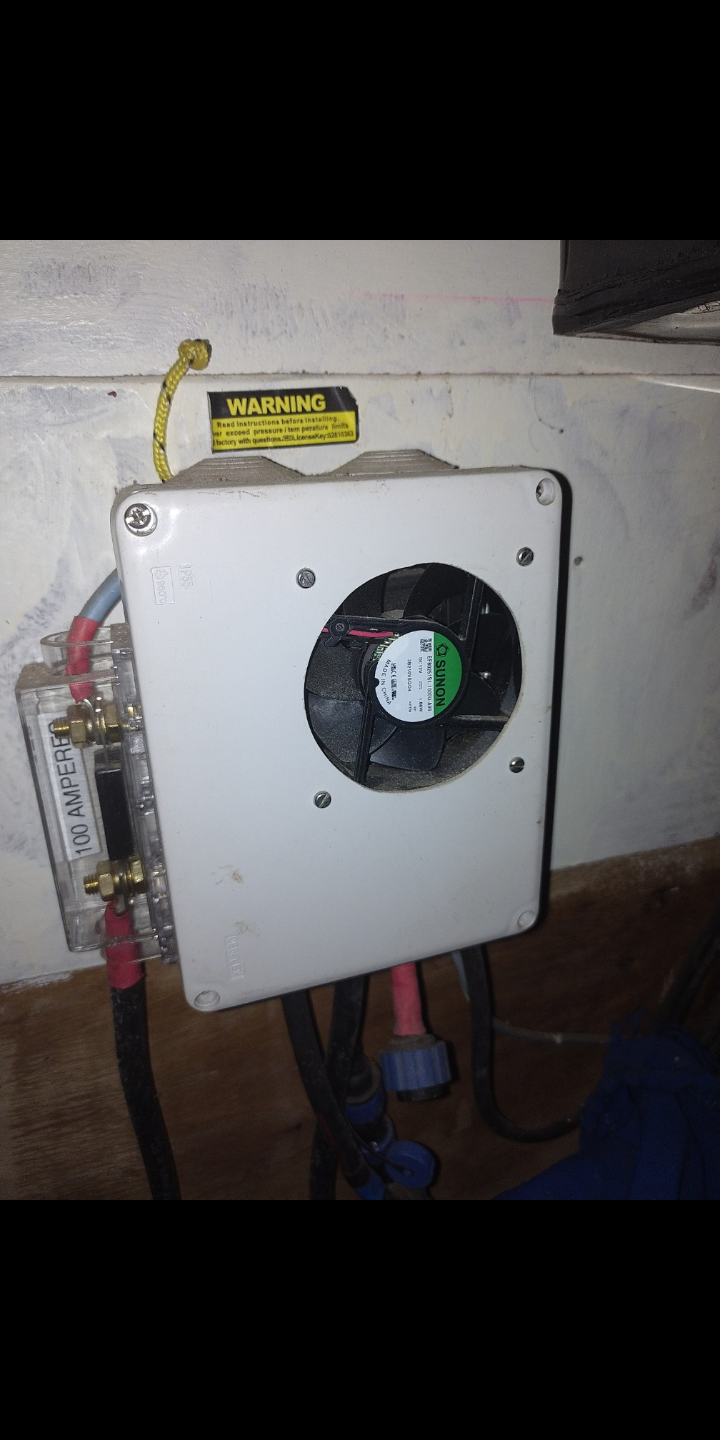 Niveau Ampérage, le moteur consomme 50A, ce qui est intéressant surtout si vous avez des panneaux solaires car en fonctionnement d'une heure par jour, les panneaux, en fonction de leur capacité, rechargent l'installation en très peu de temps."
