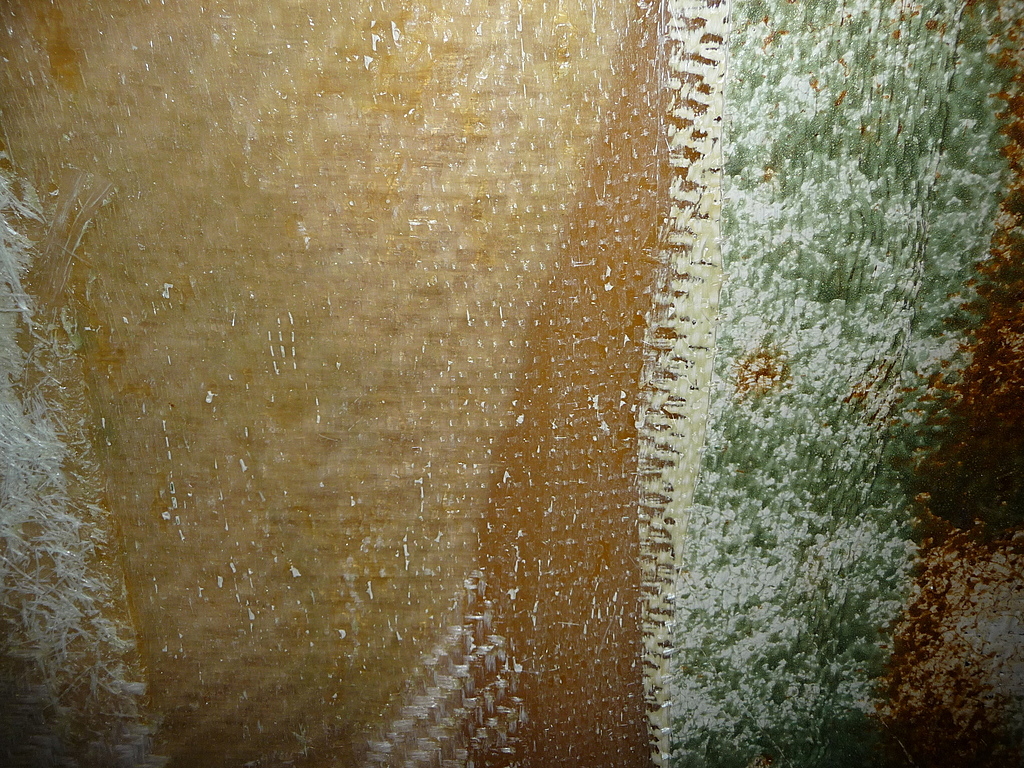 Marauca : il y a un trou (un gros) donc contre moule obligatoire. Mon tissu est du rovimat, le mat 100 est collé a un bx700, c'est pour ca que je me demande quel coté mettre en contact avec la coque, le coté BX, ou le coté mat.