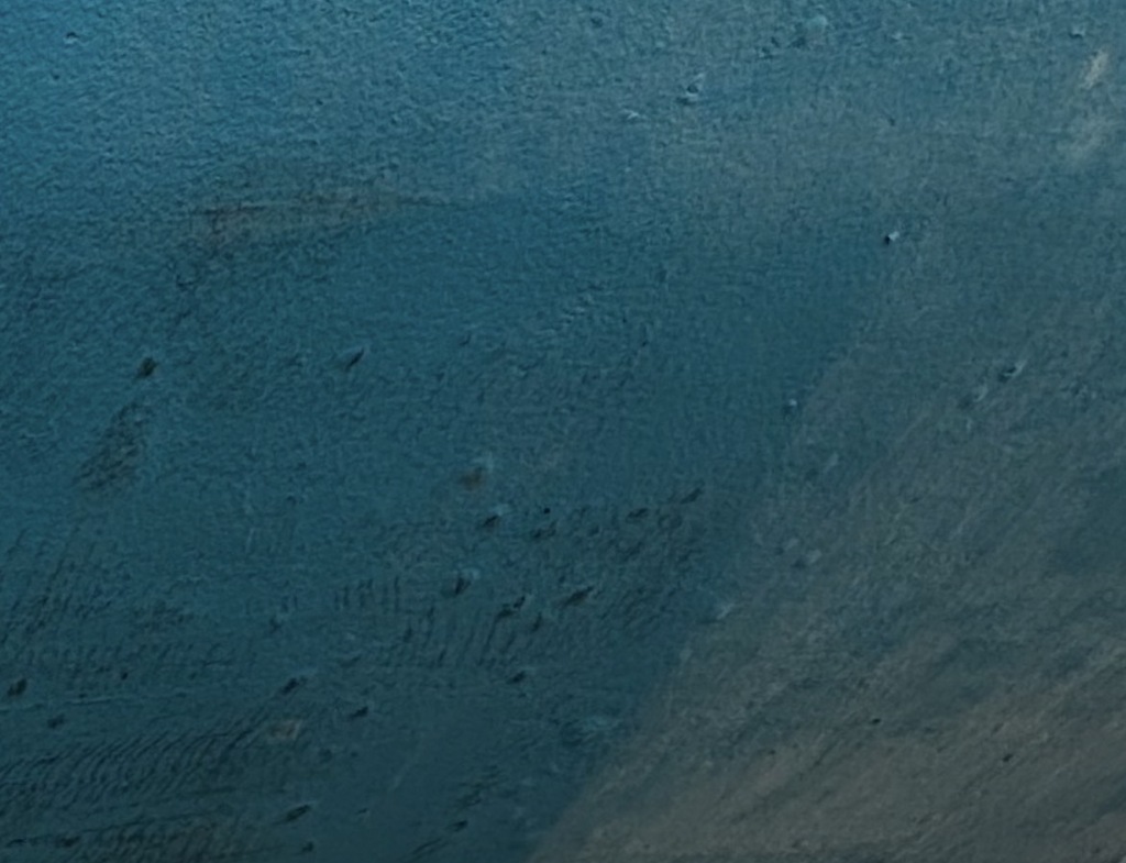le morceau “brut” qu’on aperçoit sur une photo vient simplement du joint craquelé et d’un peu d’antifouling que j’ai gratté pour voir dessous,