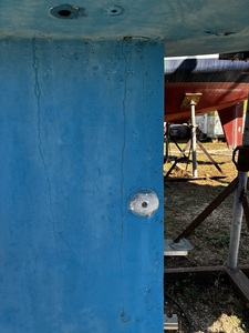 Il y a plusieurs fissures verticales le long de la quille. C'est pas vraiment rassurant.