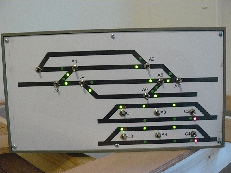 J'avais fait sur une plaque d'alu format A4 avec des mini contacteurs et des diodes+résistance comme témoin, avec des disjoncteurs réarmables. J'avais imprimé la face avant sur une jet d'encre (en blanc sur fond noir, ne pas se tromper, les cartouches descendent vite !) sur du Canson et verni ensuite, collé au double face sur l'alu. Ça n'a pas bougé. Le seul problème par rapport aux étiquettes, c'est que si un interrupteur change de fonction, il faut ré-imprimer une nouvelle façade.