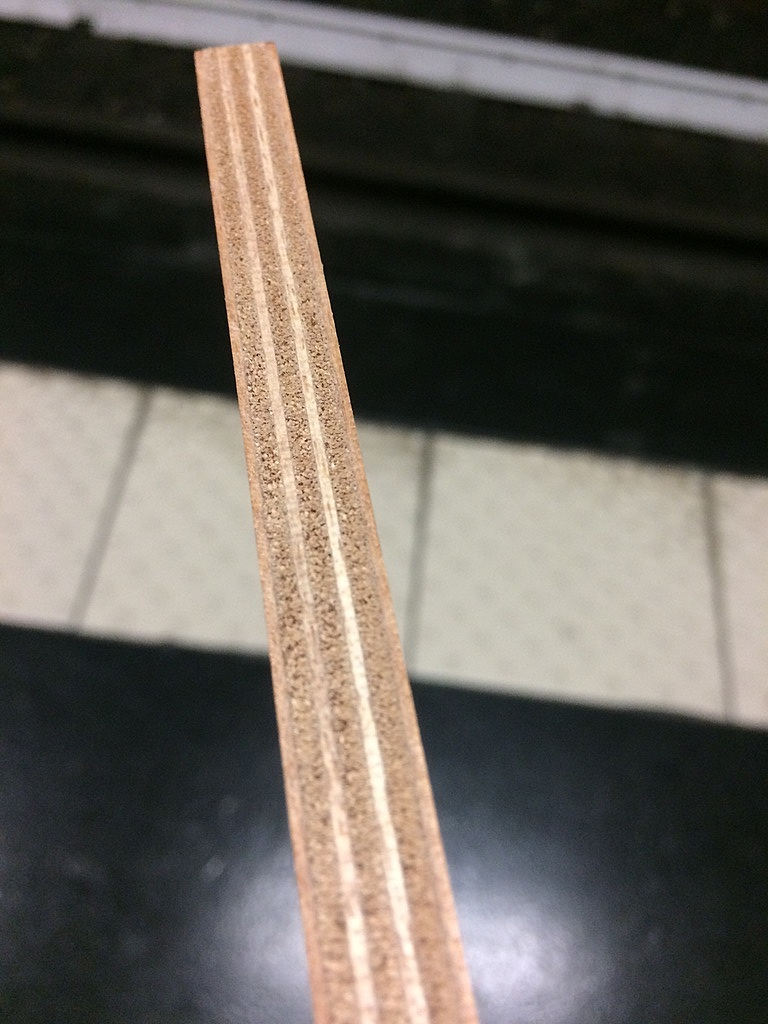La tu parles de "decorative marine plywood" et la norme est 1.1mm d'épaisseur par pli, et c'est du bois dur, on est plus dans la même catégorie.