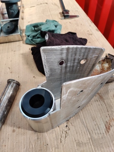 pour démonter un tel safran, il faut déjà déposer la crapaudine qui est la pièce reliant la mèche de safran à l' aileron dans le bas.